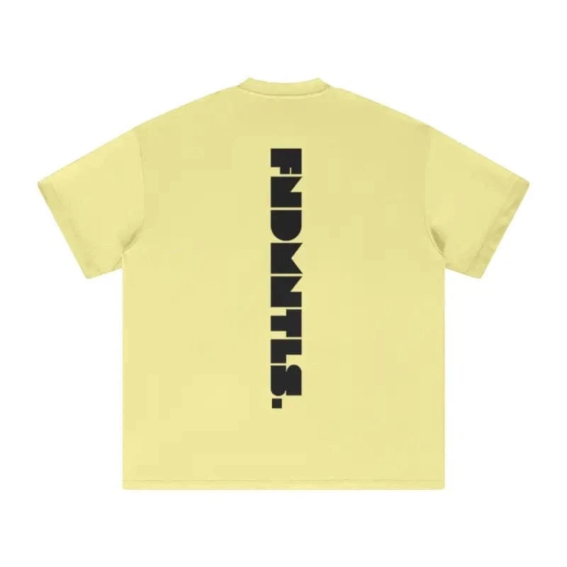 The FNDMNTLS. Black Logo Heavyweight Graphic T-Shirt offers both enduring style and exceptional comfort. Constructed from premium heavyweight 100% cotton fabric, this t-shirt provides long-lasting resilience and a substantial feel. The 9.0 oz/yd² (305 g/m²) fabric offers a moderate thickness with slight stretch for ease of movement. Its bold black...The FNDMNTLS. Black Logo Heavyweight Graphic T-Shirt offers both enduring style and exceptional comfort. Constructed from premium heavyweight 100% cotton fabric, this t-shirt provides long-lasting resilience and a substantial feel. The 9.0 oz/yd² (305 g/m²) fabric offers a moderate thickness with slight stretch for ease of movement. Its bold black design showcases a distinctive logo graphic, measuring 40x52cm, creating a strong visual statement suitable for various occasions. This versatile piece seamlessly integrates into a modern wardrobe, ideal for those who appreciate quality construction and impactful design in their everyday attire. Consider pairing this tee with one of our graphic hoodies for a complete casual look.