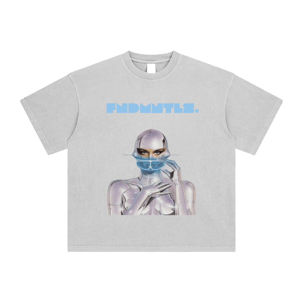 Step into the future with the FNDMNTLS. Cyborg Enzyme Washed Black Graphic T-shirt. Its bold, enzyme-washed black fabric offers a unique worn-in look that commands attention. Featuring striking graphic details, this tee blends edgy style with comfortable wearability, perfect for those who dare to stand out and push boundaries. Elevate your wardrobe with a piece that’s as fearless as you are.